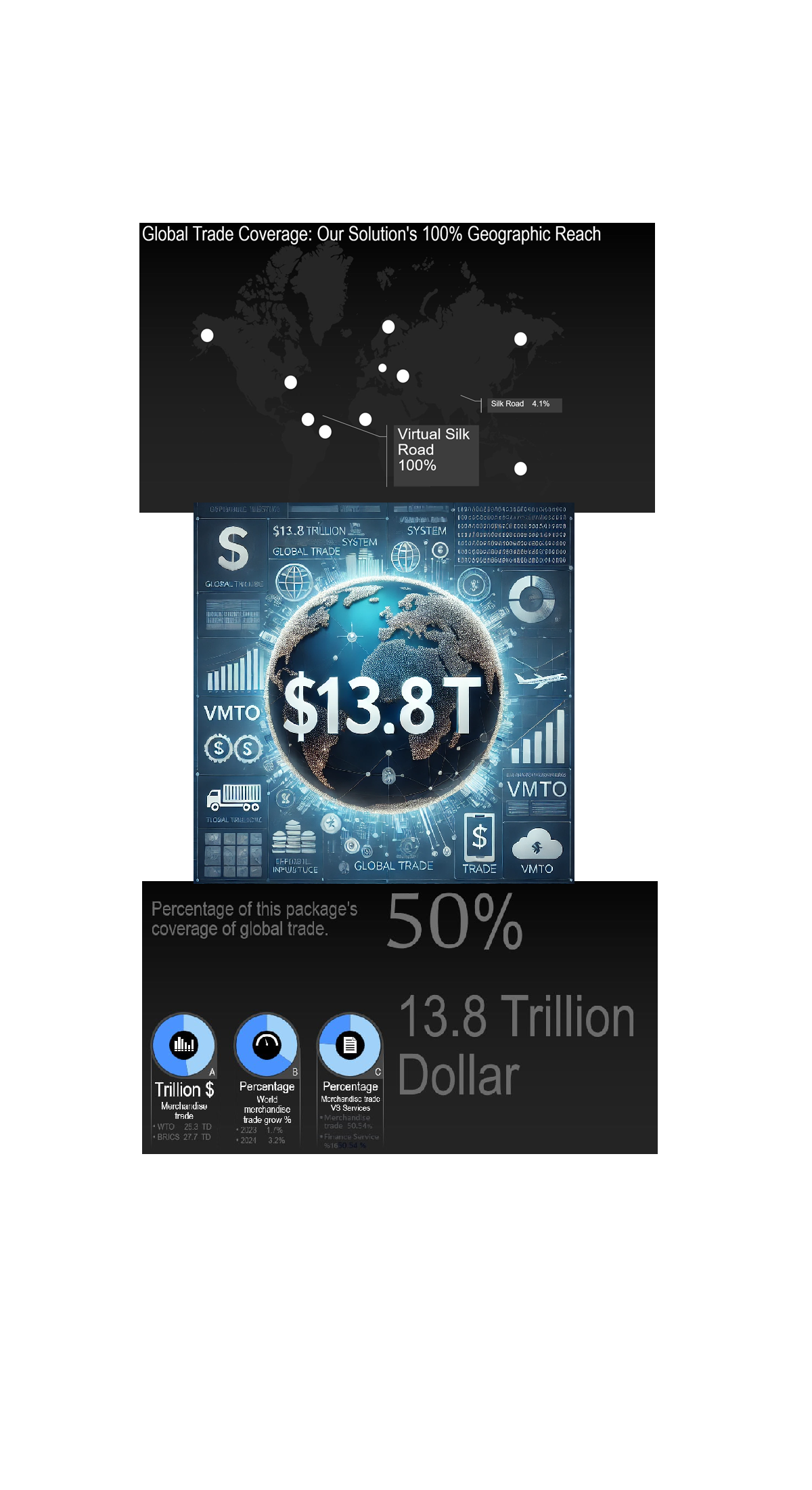 VMTO able to cover 100% of the world's geographic trade areas and 50% of the global merchandise volume about $13.8T.
